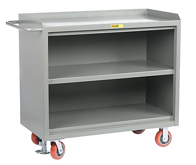 All welded 12 gauge construction The top work surface is surrounded by retaining lip on three sides 2 Swivel and 2 rigid non-marking polyurethane wheels